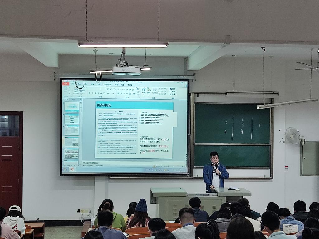 在8号教学楼T201教室举行奖助学金评选宣讲会。此次宣讲会由学院辅导员胡老师担任主讲人,各年级同学参加。