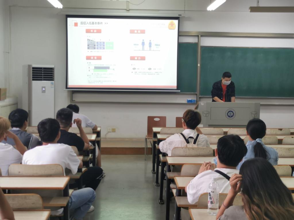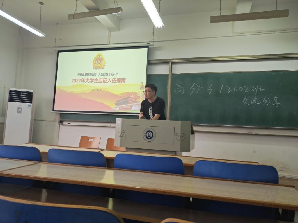 各班班长召开征兵宣传主题班会,从部队简介、应征入伍基本条件、入伍流程、大学生参军特别优惠政策、军营生活等方面详细解读了2022年征兵政策,并着重提到了部队对毕业生参军的优待政策,在同学们心中埋下了参军入伍的种子。