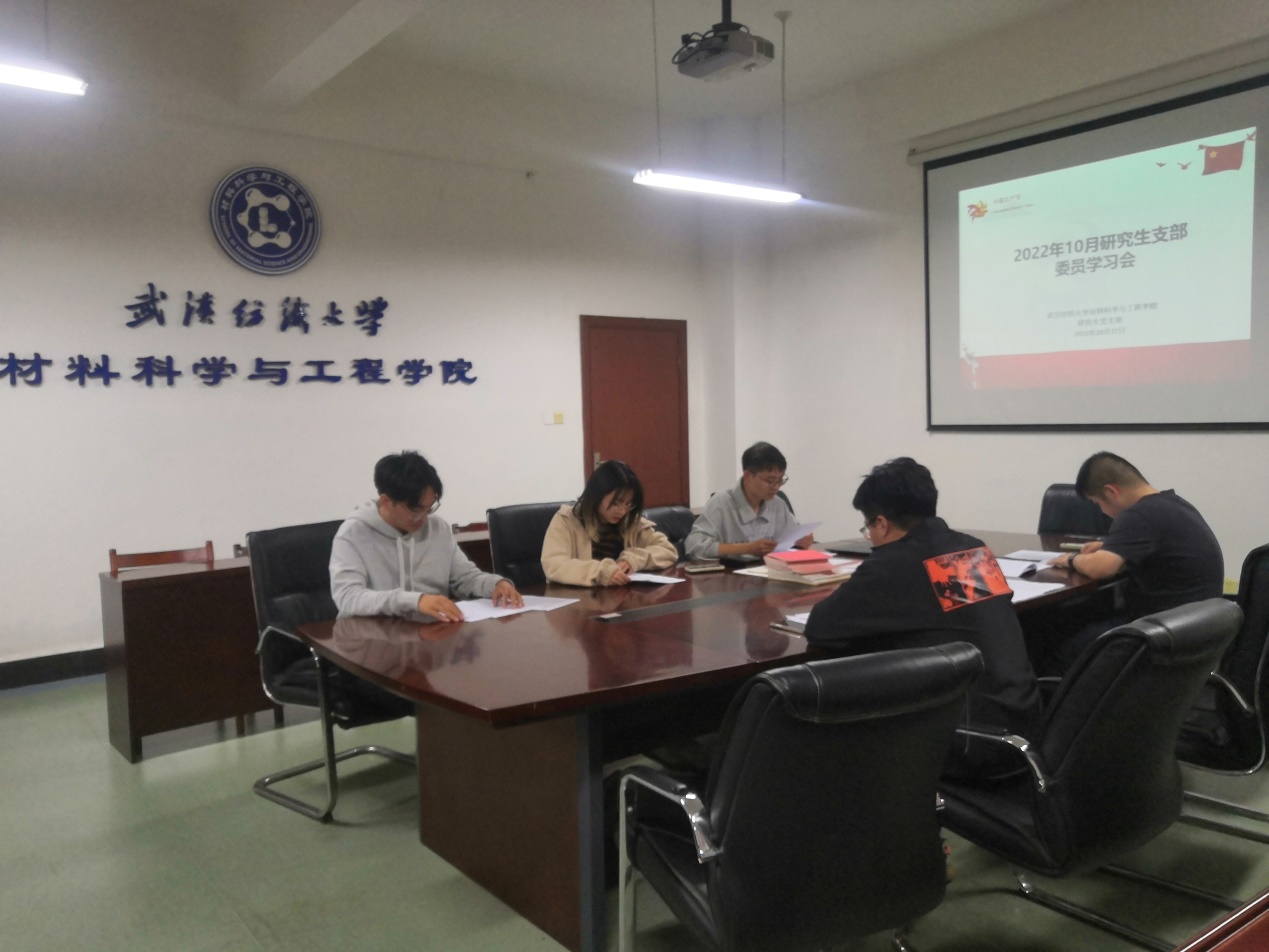 研究生党支部在八栋教学楼506会议室召开十一月支委会。研究生党支部全体支委和研究生党支部书记胡晓参加了本次会议,会议由支部书记胡晓主持。