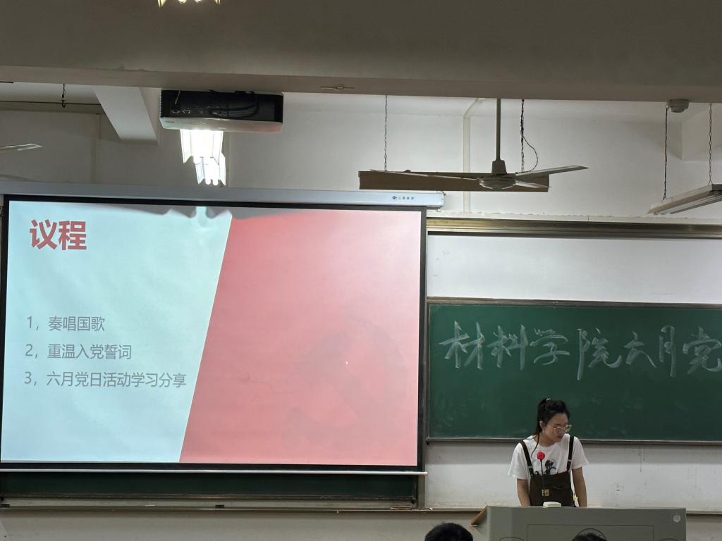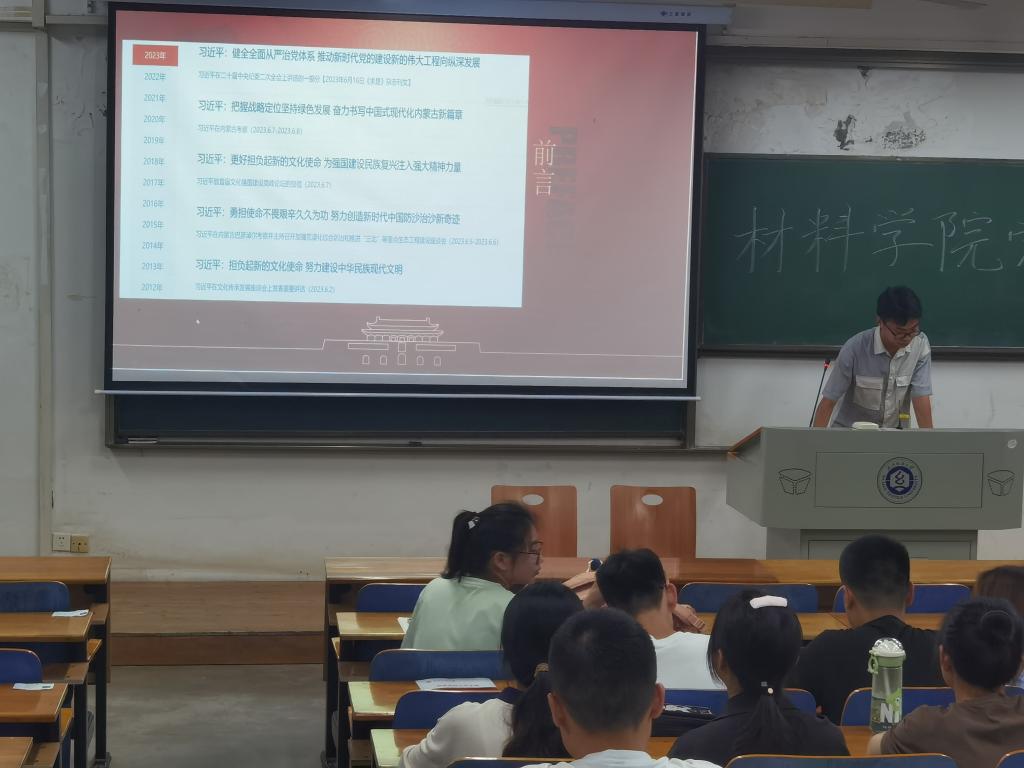 会议开始,全体成员起立奏唱国歌,重温入党誓词。随后,领学人以PPT和视频等形式分享了理论学习心得体会。材科12001吴成峰与复材12002温佳欣主讲“习近平总书记在中央政治局第五次集体学习时的重要讲话精神”,总书记要求,以教育之强夯实国家富强之基。全面落实立德树人根本任务,把高质量发展作为各级各类教育的生命线,建设教育强国是全党全社会的共同责任。