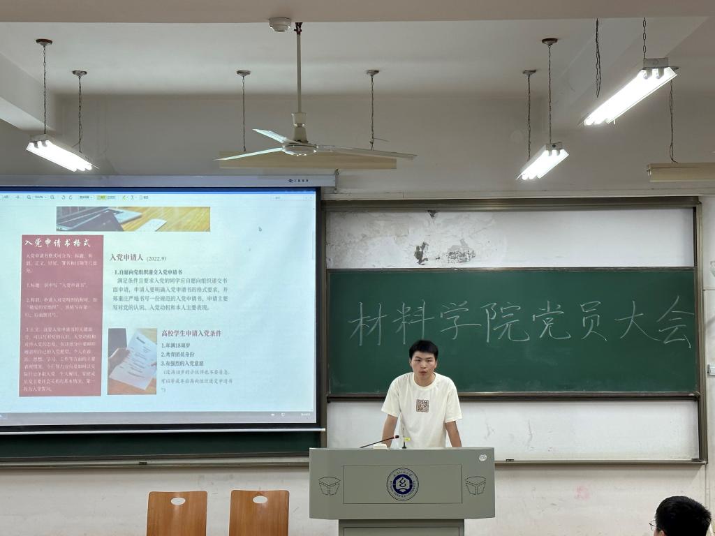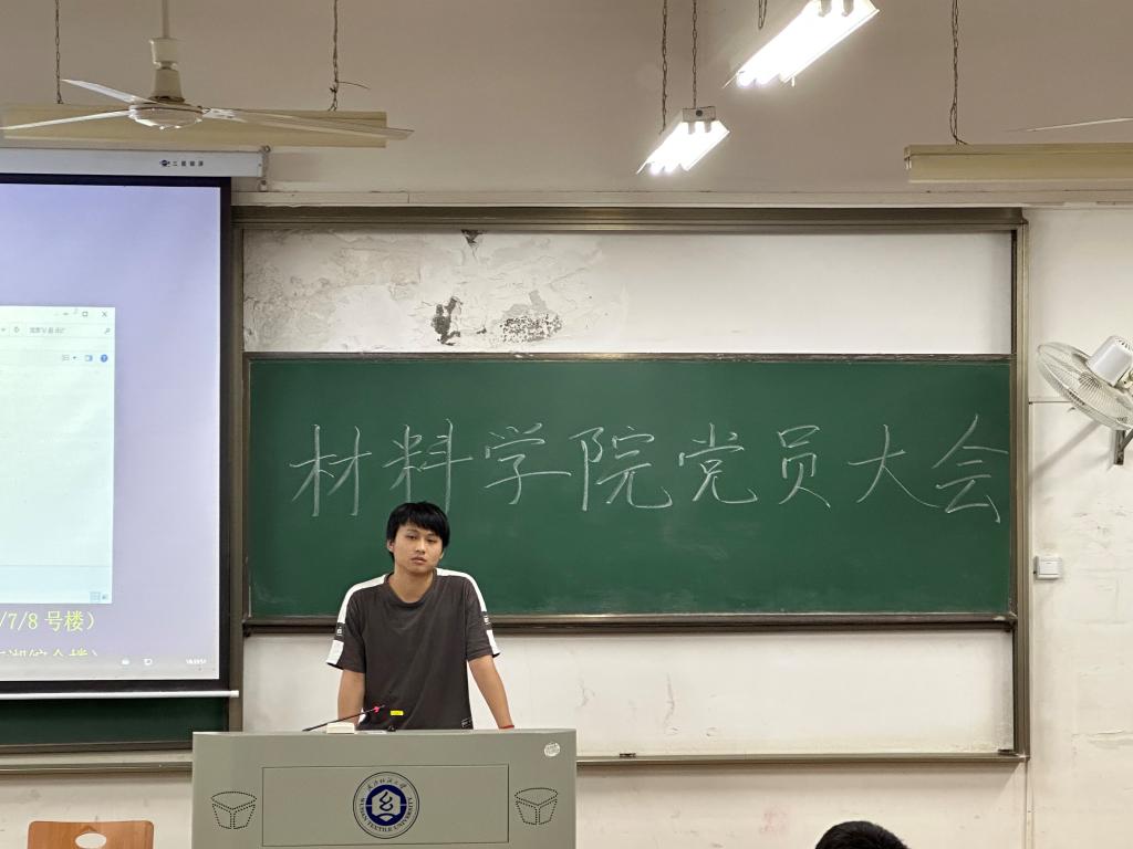 学生二支部纪检委员蔚翔报告了支委换届工作,并介绍了两个支部新一届支委成员。强调全体人员需牢记自身党员身份,落实党员服务群众要求;党员需要注意自身形象,做好榜样,做到谨言慎行,时常照镜子、正衣冠。