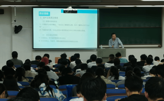 承办的心理专家进校园活动在阳光校区崇志楼T102开讲,本期讲堂以“情绪管理和压力应对”为主题,特邀武汉轻工大学心理健康教育中心主任,副教授,华中科技大学心理学研究所博士,中国心理学会注册系统注册心理师魏鹏程主讲,各学院共300余名学生参加。