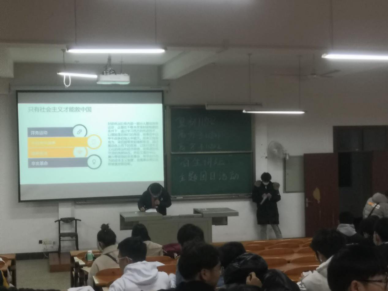 各班团支部组织开展与“百生讲坛”主题团日活动。此次活动主要围绕十九届五中全会、脱贫攻坚、抗疫精神等主题展开,各班团员积极参加、深入学习。