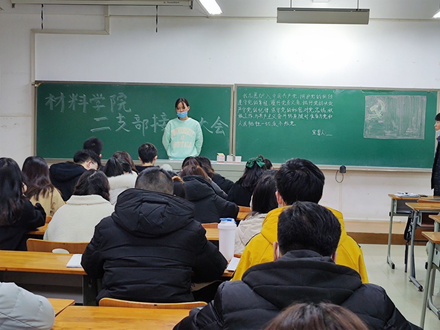各学生党支部在6栋教学楼组织召开了预备党员接收大会。全体党员同志参加了本次活动。