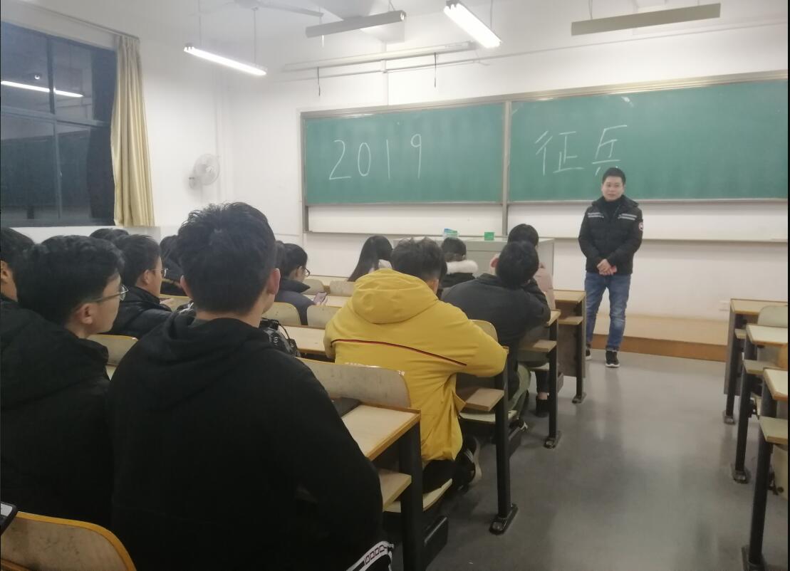于1月6号晚开展了2019年征兵宣传系列活动,同时邀请了2014级退伍复学学生晏松参会并做了朋辈交流。活动由毕业班辅导员祝捷老师主持。