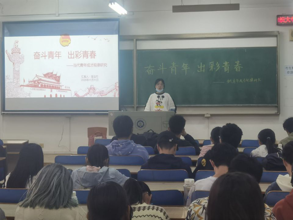 团委书记曾玉竹老师在03-507给20级学生召开主题团课,本次团课以“奋斗青年,出彩青春”为主题,分享了当代青年的成才规律,通过帮助同学们树立正确的青春观、成才观,从而更好地把握大学四年时光。