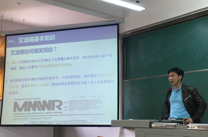 王强以“美好青春我做主”为主题,从艾滋病基本知识、艾滋病流行概况、青年学生如何预防艾滋病、青年学生在艾滋病防治中的作用四个方面进行讲解。他指出,近年来,学生、男同性恋者和老年人感染艾滋病比例有所增加。艾滋病尚不可治愈但可以预防和治疗,虽然可怕,但其传播途径明确,和艾滋病人一起正常的学习生活是不会传染艾滋病的,要消除人们“谈艾色变”的思想。王强表示,只要人们洁身自好,纠正不良行为,艾滋病是完全可以预防的。建议同学们要提高自我保护意识,把主要精力放到学业中来,正确认识和对待性行为,杜绝吸毒等危险行为的发生。