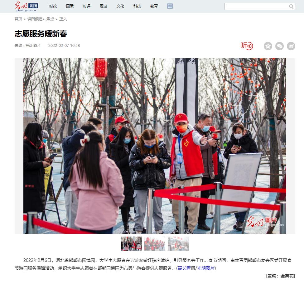 初一至初六全勤参与邯郸园博园春节游园志愿服务活动,个人志愿服务时长已累计1000余小时