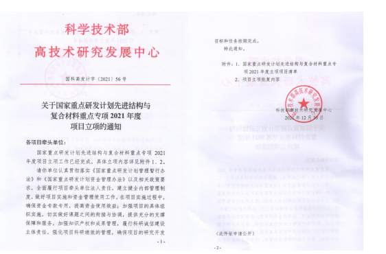 近日,科技部高技术研究发展中心颁发了2021年度国家重点研发计划“高端功能与智能材料”和“先进结构与复合材料”重点专项立项正式通知,我校91传媒