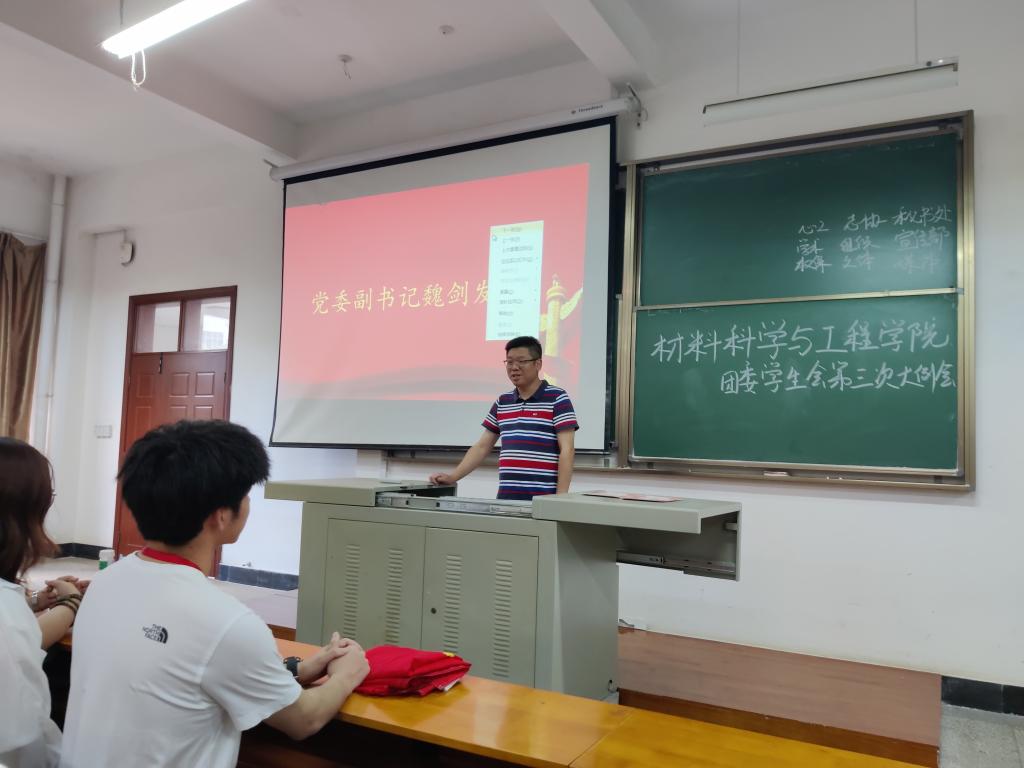 首先,各组织负责人汇报了本学期工作开展情况,并就学院团委学生会建设积极谈论,建言献策。随后,魏剑书记进一步了解学院品牌活动、暑期社会实践开展、学生团队建设等各方面内容。最后,魏剑书记向学生骨干及团学工作提出了三点建议:一是要有集体荣誉感,共同维护好团委学生会这个大集体,认真对待每个活动和每次会议,积极为组织的发展贡献力量;二是要有奋斗目标,认真规划自己的大学生活,认真学习、加强锻炼,提升本领;三是要有奉献精神和服务精神,始终秉持服务同学的原则,乐于奉献、勇于吃苦。