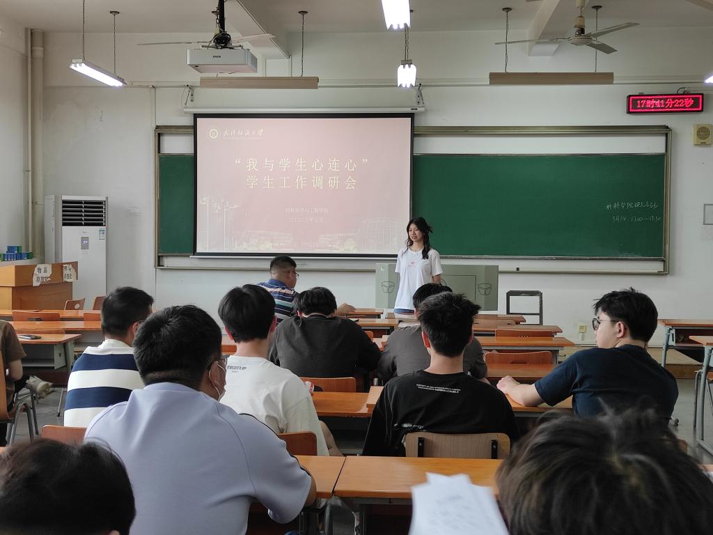 党委副书记魏剑与结对班级材科12001班在3-213教室组织开展学习贯彻习近平新时代中国特色社会主义思想主题教育暨“我与学生心连心”主题调研班会,20级辅导员以及材科12001班学生参加了本次主题调研会。