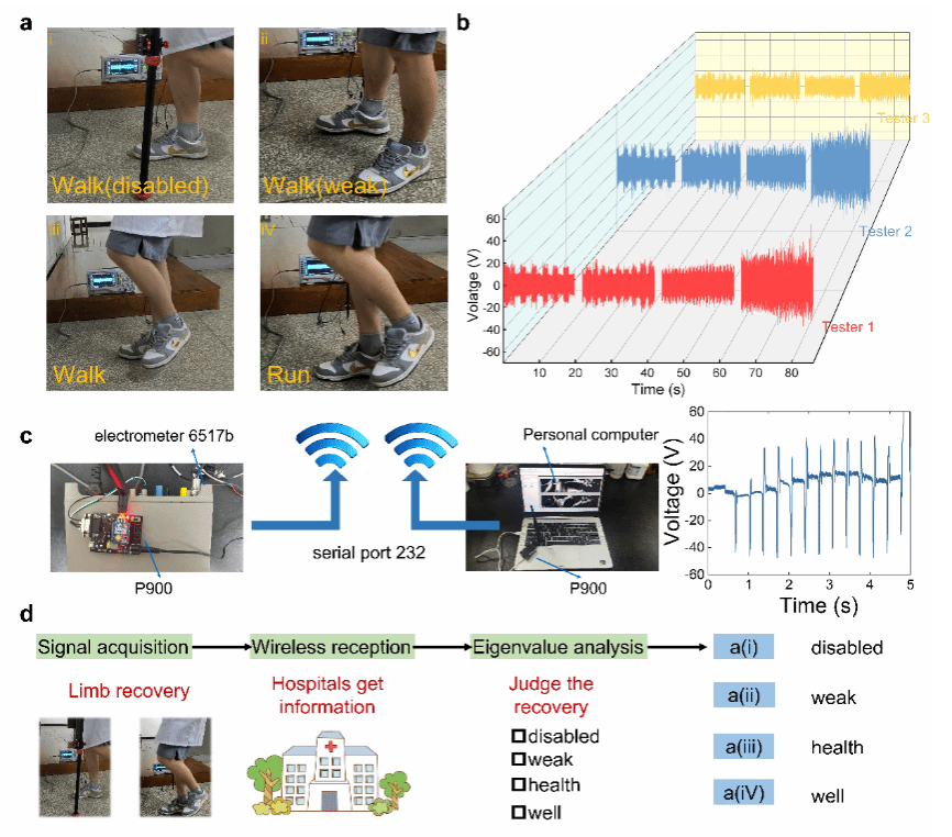 图3 TiO2 nfs@CA t-TENGs的肢体恢复监测功能